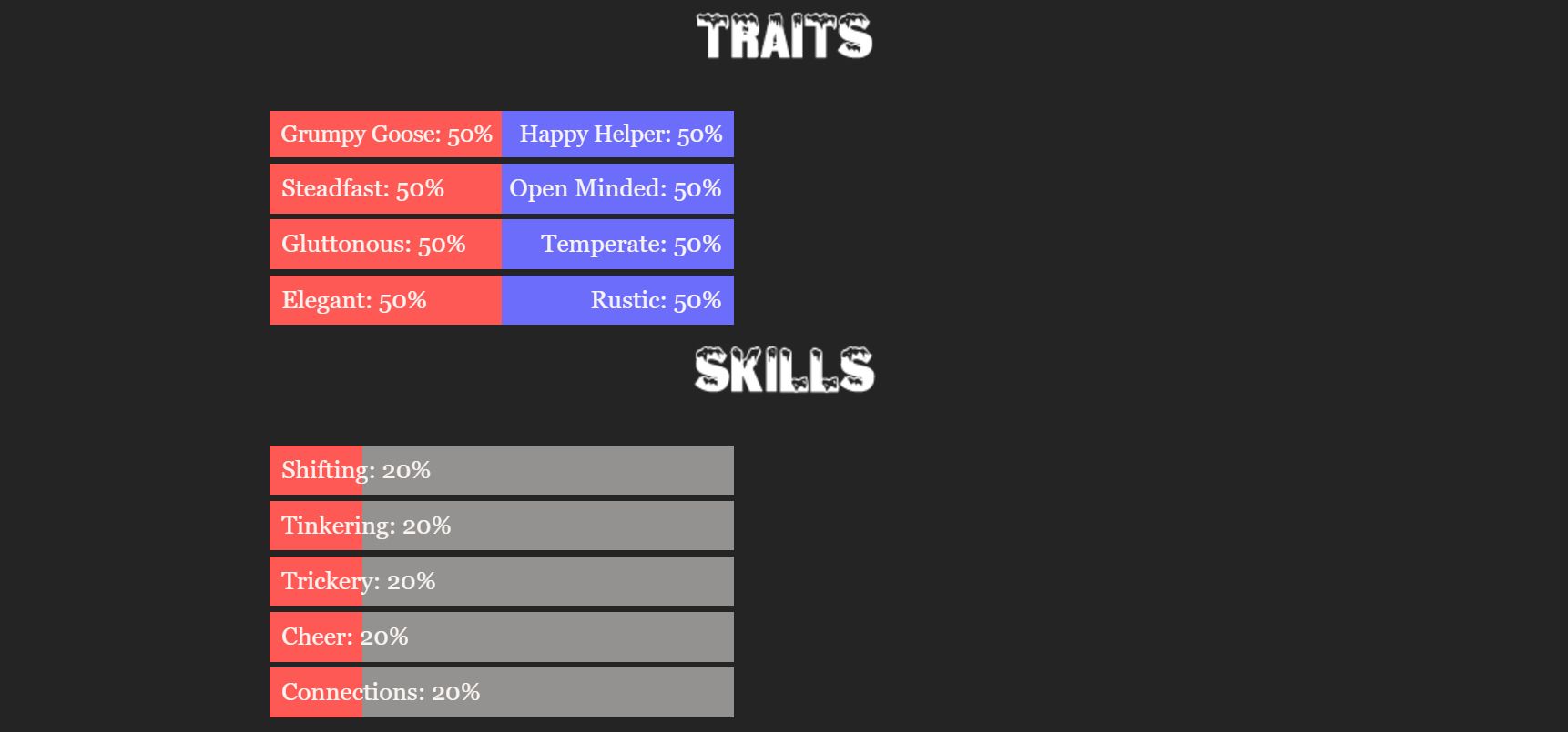While it may only seem like players choose how to proceed in the story, the game provides RPG elements by having those choices impact the development of a broad set of skills. Shifting, Tinkering, Trickery, Cheer, Grumpy Goose/Happy Helper, and Steadfast/Open Minded are but some of the attributes that form based on decisions made. This is expanded as well towards developing relationships with key characters in the story, which will affect how easy or difficult certain choices are later on.